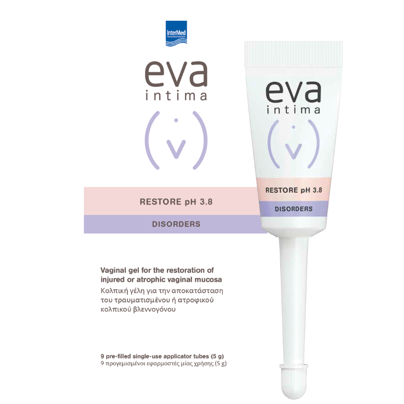 EVA RESTORE 3.0 pH Вагинални апликатори е вагинален гел за реставрација на повредена или атрофична вагинална слузница. Поради високата концентрација на хијалуронска киселина се оддржува природната влажност во вагината, уникатната комбинација на билки со смирувачко дејство делуваат против симптомите на сувост на вагината, како што се чувството на печење или чешање, доколку млечната киселина придонесува за прилагодување на вагиналната pH вредност на нејзината нормална кисела вредност.